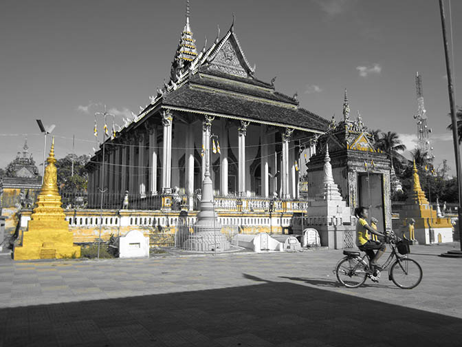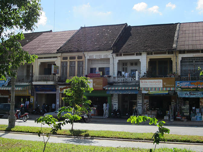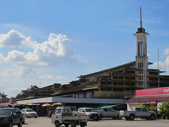 Battambang itself is a lovely little town. We walked the highlights of it: the market, the colonial buildings, the French shop houses, the disused railway station, a temple, and the river with its many bridges. The lowlight was a meal that tasted good going down, but had Sara in the bathroom most of the night bringing it back up. The next morning we were scheduled for a 7 hour boat ride at 7AM to Siem Reap.