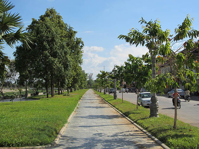 We tried to avoid the regular backpacker (read: Lonely Planet) guesthouses and found ourselves at Senghout Hotel. It was great! $12 for an air-con room with cable TV. Seng Hout has a surprisingly nice rooftop garden with panoramic views of the city, and a great group of tuk-tuk drivers who charge less than the going rate for day trips. We rented a tuk-tuk for $15, heading out at about 11AM and returning to the guesthouse at 7PM. Our driver was a nice young man who was eager to make us comfortable.