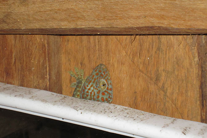 Gertrude the Gecko in our bathroom.