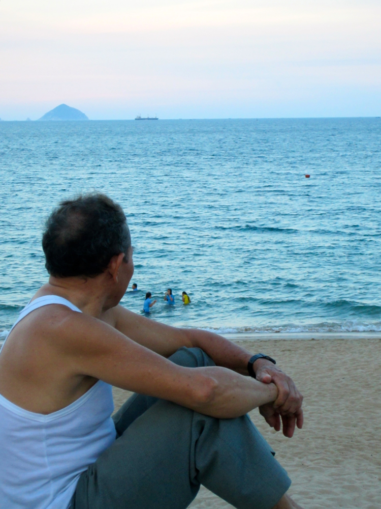 From Quy Nhon‘s nearest train station, Dieu Tri, we took SE5 (220,000d/$10.50) at 3:09pm and arrived in Nha Trang around 8pm. That night Ryan vowed never to ride a Vietnamese train at night again, after witnessing a mouse run out from under our seats, across the aisle, and towards an adjacent lady’s bag of corn that she had on the floor.