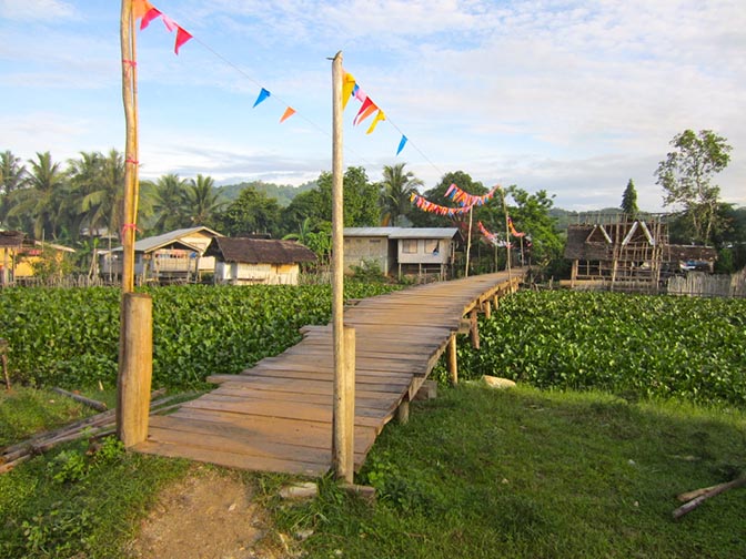 The lady at the desk recommended a local beach named Bincilao. We took a tricycle for P30/$0.70 out to the beach. We walked along a narrow dirt path through the trees and were greeted with the sight of a garbage strewn beach. The water was definitely not clean enough to swim, with many suspicious looking fluids and objects floating in it (although there were some young local boys swimming when we got there). We went back to the Pension, sipped on drinks, and watched the tide go out.