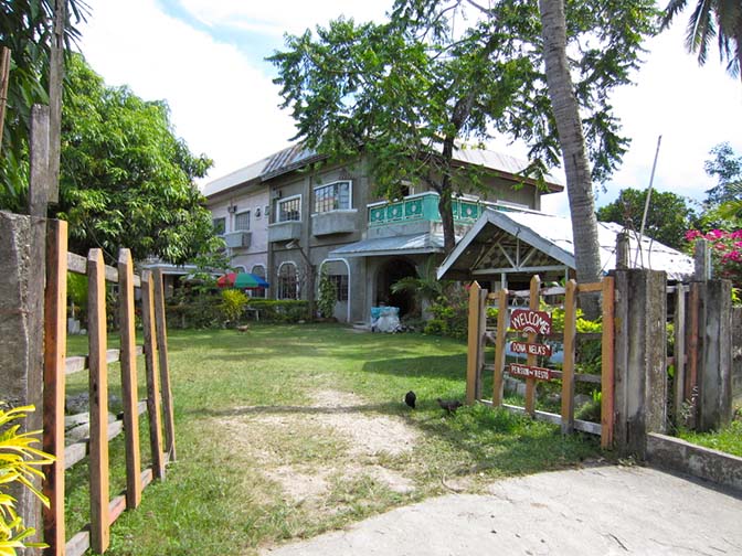We walked down the street and came across Dona Nela’s Pension. The pension is in an old Spanish villa set in a lovely garden which you could be forgiven for thinking was once used as a mental hospital. We paid P750/$17.80 and got a large air-con room with enough beds to have a town sleepover, but they had rooms to fit any budget (large or small). The man on the desk was very helpful and pointed out all the restaurants in town, he even helped us with future accommodations.