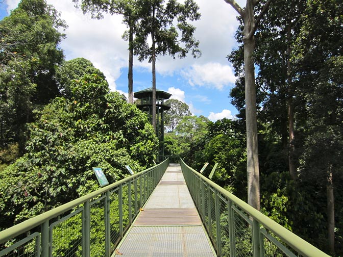 9AM the next morning, we walked to the Rainforest Discovery Centre. We bought our tickets (RM10/$3.25) and wandered inside, soon realizing we had the place to ourselves, given that most people are at the orang-utan’s 10am feeding. Our first stop was at the plant discovery garden where they grow and label many of the interesting flora found in the Bornean rainforest such as pitcher plants, as well as many tropical American plants like Venus flytraps and cacti!