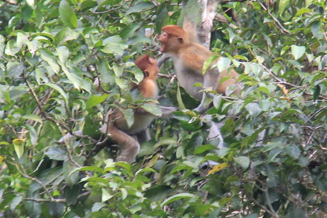 We decided to do an afternoon cruise at 3pm and an evening cruise at 8pm. The cruises were RM50/$16.20 per person per tour. Osman’s wife assured us that we would see more animals in the afternoon than the morning. In the meantime, we sat on the deck and soaked up the serenity of the Kinabatangan River; enjoyed a simple lunch of egg, eggplant, and rice; and played cards with the children.