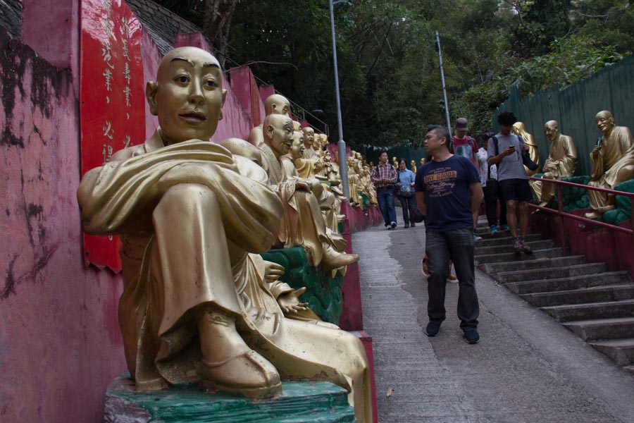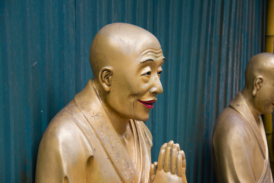 As you climb the steps, don’t start counting the statues – these aren’t the droids Buddhas you are looking for. The 10,000 Buddhas (actually 12,800) are in a temple at the top of the hill, but the statues that line the path are suppose to be various followers of Buddhism. It’s a quirky set of people.